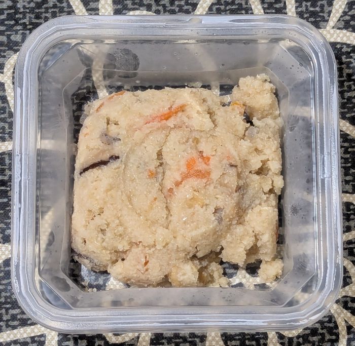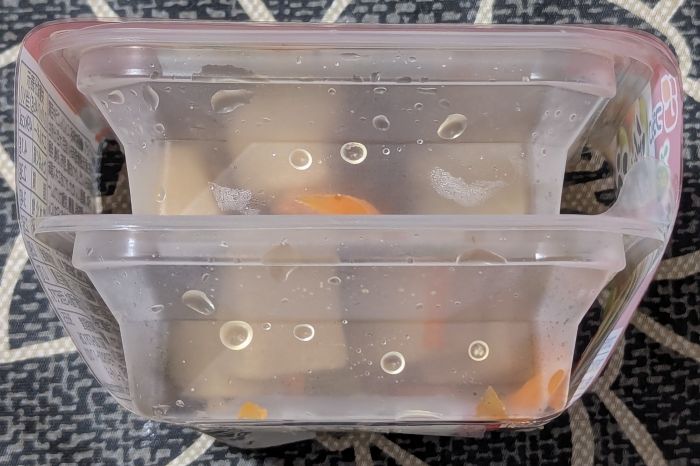 初めて購入して食べてみました。こうや豆腐・にんじん・しいたけ・枝豆が入っており、こうや豆腐には出汁がしみ込み、おいしくいただきました。別の日にはパッケージに書かれているように、温めて食べてみて、こちらもおいしいかったです。こうや豆腐自体は知っていたものの、作り方までは気にしておらず、木綿豆腐を凍らせて作ることを今回初めて知りました。